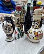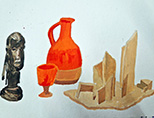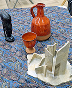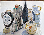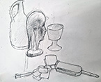 This was an untutored session and Members were invited to bring an interesting object to sketch or paint. The display was certainly interesting - items included an African statue, a windmill, a striking blue cat, a leaping metal dolphin, colourful bottles and, from the natural world, a selection of seashells, an intriguing twisted branch and a sheep’s skull. Some colourful fabrics gave an added twist. The aim of the session was to encourage quick, bold sketches and the timer was set to 10 minutes, after which a change in position brought a new challenge. This was a very enjoyable evening and very well attended. Some Members were ambitious enough to use paints and, as can be seen from the images, there were some impressive results. A few used a large format to overlay and blend the various elements very successfully. Some focused on detailed and exact sketches. A great variety of media was in play. It was fun to work quickly and enjoyable, at the end of the session, to see the variety of work produced.