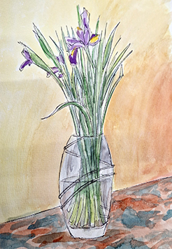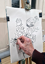 This untutored workshop produced some interesting studies of a variety of lovely spring flowers contributed by Members. These included daffodils, tulips, irises and hellebores. There were also interesting pots and vases to draw or paint and different groupings and layouts. One Member had brought along an old sextant to draw. Members worked in watercolours, acrylics and oils. Some images were bold and colourful, others delicate and detailed. This was a very enjoyable and relaxing evening and some Members took photos in order to complete their paintings later.