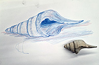 A short demonstration followed with Sue using graphite and charcoal. She began her drawing by indicating the darkest areas, working outwards to define the barnacle she had chosen with lighter marks. We had been invited to bring chalks/pastels or our own preferred choice of mediums. She kindly brought along graphite sticks and A3 boards to share.