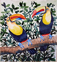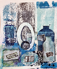 This was great fun. Rather messy with lots of paper tearing. Some preferred to use scissors to give a crisp edge to the work. Some had already prepared painted or printed backgrounds for this project. There are no rules with collage. It simply grows as decisions are made to put this colour there, that shape to one side, all very personal choices. There was a huge variety in the final pieces of work. Some were soft and muted, others bold with strong colours. Sally was warmly thanked for leading this workshop. Everyone enjoyed it and the display of images below shows great promise for any future works.