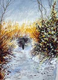 Each year embers of Hertford Art Society are invited to illustrate Hertford Choral Society’s Easter concert, performed in All Saints Church in Hertford. This year’s concert is Mendelssohn’s oratorio ‘Elijah’ which will take place on Saturday 29th March. This vividly dramatic oratorio draws its text from the Bible and tells the story of one of the fiercest prophets of the Old Testament. It opens with the pronouncement from Elijah that due to the people’s unfaithfulness, there will be a long drought. The following scenes were illustrated by the artists named in brackets.