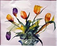 This was an untutored session and Members were invited to bring an interesting object to sketch or paint. The display was certainly interesting - items included an African statue, a windmill, a striking blue cat, a leaping metal dolphin, colourful bottles and, from the natural world, a selection of seashells, an intriguing twisted branch and a sheep’s skull. Some colourful fabrics gave an added twist. The aim of the session was to encourage quick, bold sketches and the timer was set to 10 minutes, after which a change in position brought a new challenge. This was a very enjoyable evening and very well attended. Some Members were ambitious enough to use paints and, as can be seen from the images, there were some impressive results. A few used a large format to overlay and blend the various elements very successfully. Some focused on detailed and exact sketches. A great variety of media was in play. It was fun to work quickly and enjoyable, at the end of the session, to see the variety of work produced.