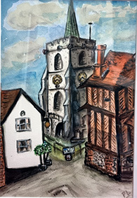 Dating from the mid-15th Century, Hertford Castle hosts many events throughout the year and houses the offices of the Town Council. It is a beautiful building set in historic grounds. Each Autumn, Hertford’s Mayor is invited to comes along to a Tuesday evening session at Cowbridge Halls and sit for their portrait. Members of Hertford Art Society enjoy painting and drawing the current Mayor in full regalia and many colourful images result from this enjoyable annual event.