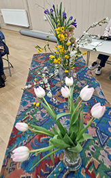This untutored workshop produced some interesting studies of a variety of lovely spring flowers contributed by Members. These included daffodils, tulips, irises and hellebores. There were also interesting pots and vases to draw or paint and different groupings and layouts. One Member had brought along an old sextant to draw. Members worked in watercolours, acrylics and oils. Some images were bold and colourful, others delicate and detailed. This was a very enjoyable and relaxing evening and some Members took photos in order to complete their paintings later.