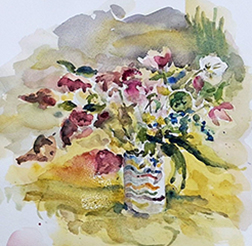 Members were asked to bring interesting items for this untutored workshop. These ranged from spring flowers, a group of items from someone’s toolshed, colourful pots and sculptures, a fascinating collection of fossils, a display of hats and a bicycle. There was plenty to inspire and Members worked in various mediums, sketching and painting either in short bursts, moving around the various displays, or concentrating on one item for a more studied image. Some used watercolours, others acrylics, pastels, charcoal or pencil. The set ups were imaginative and there was a great variety in the work produced. This was a very enjoyable DIY evening and Members were thanked for bringing along such a stimulating variety of items.