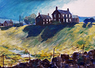 Mike began to add various greens to the foreground, loosely to give texture to the slope and then added layers of colour to the dark façade of the houses and the shadow area. His painting soon came together and Mike then began to circulate, giving hints and tips to Members working on their paintings. Artists had brought mostly acrylic paints with some watercolours and one using pastel. The paintings started to look more interesting as the work progressed, each artist having a slightly different style but following Mike’s guidelines on the colours and tones of this dramatic scene. This was an exciting evening. It is rare to copy other’s work and Mike’s bold approach was new ground for some of us. Starting with the darks is an interesting approach. The final paintings show that Members achieved a sense of drama with excellent use of colour echoing Mike’s own painting.