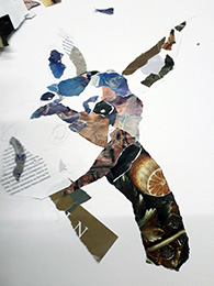 This workshop was led by Sally Hunter, a Member who has developed her own style of collage using photographs of animals and pets as a starting point. Her work has energy and personality; she often tailors the image to suit the pet’s owner. One portrait had elements of buildings and structures hidden in the form of the charming dog whose owner was an architect. Sally also enjoys creating portraits of people and landscapes in collage. Members were asked to bring a chosen image and Sally kindly supplied paper, gluesticks, pencils, scissors and a stack of magazines.