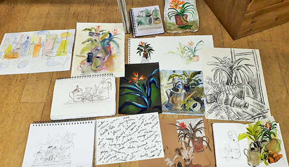 These are Jean’s notes on how to set about this, and two of her pictures. Artwork produced during the workshop is also shown below.